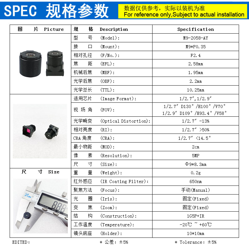适用芯片 (Image Format): 1/2.7",1/2.9"